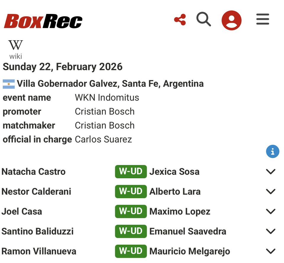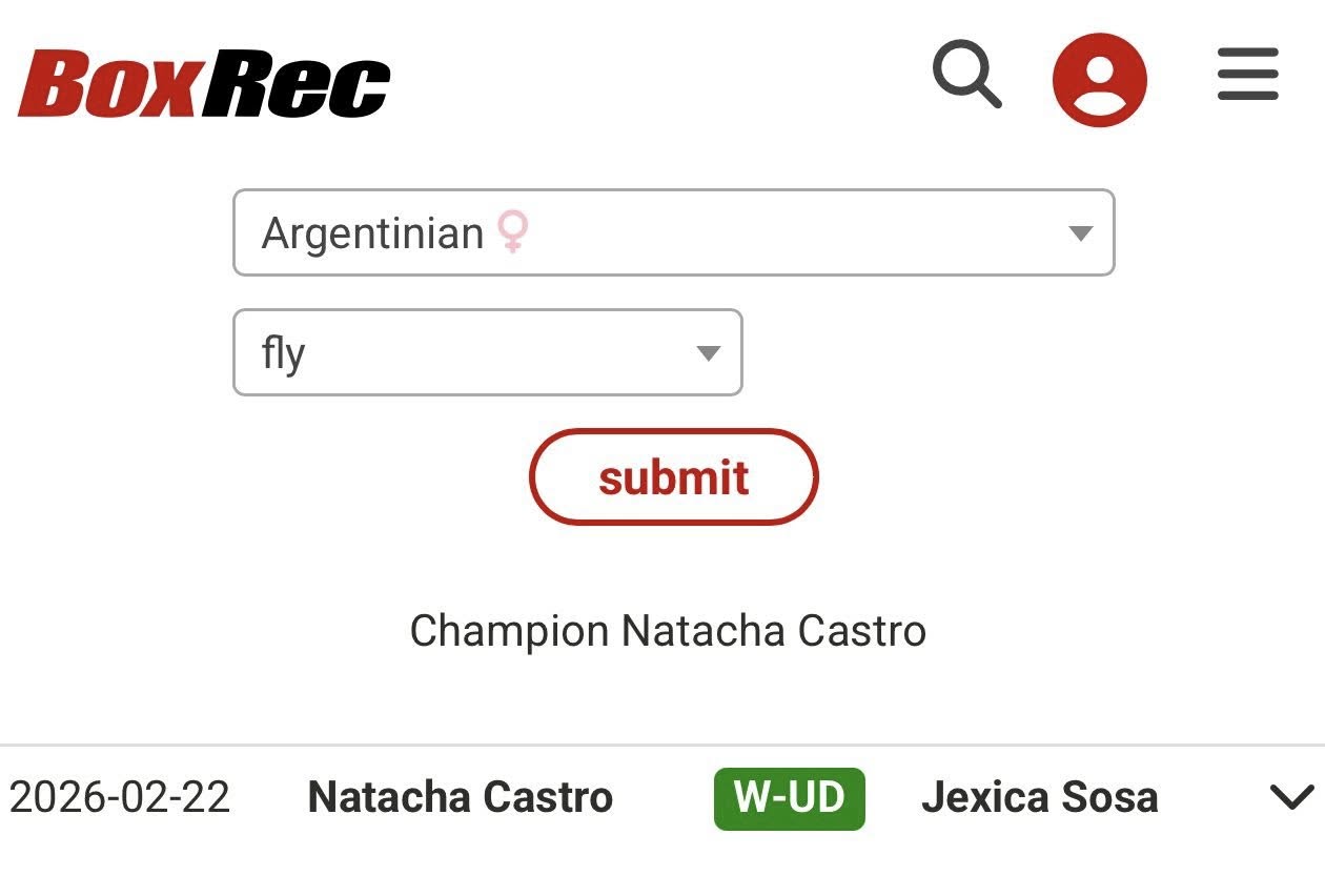 BOXREC Records Argentine Titles: INDOMITUS β February 22, 2026