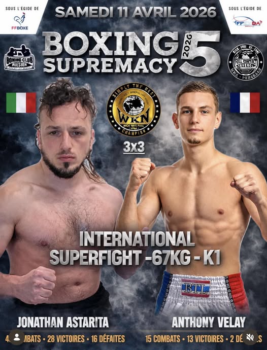 This Saturday, April 11, 2026, the Halle des Sports de Clavières will host a monumental clash of titans as Anthony Velay 🇫🇷 faces off against Jonathan Astarita 🇮🇹 at Boxing Supremacy 5.