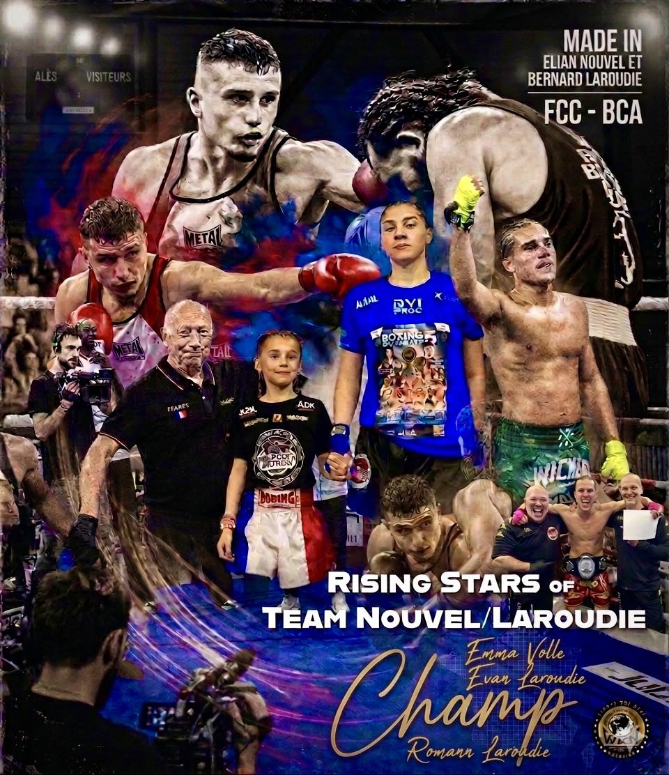 Emma Volle, Evan Laroudie, and Romann Laroudie are three young fighters who truly represent the heart and soul of Team Nouvel/Laroudie. All of them In national Team and in the highest France amateur level in kickboxing and boxing.