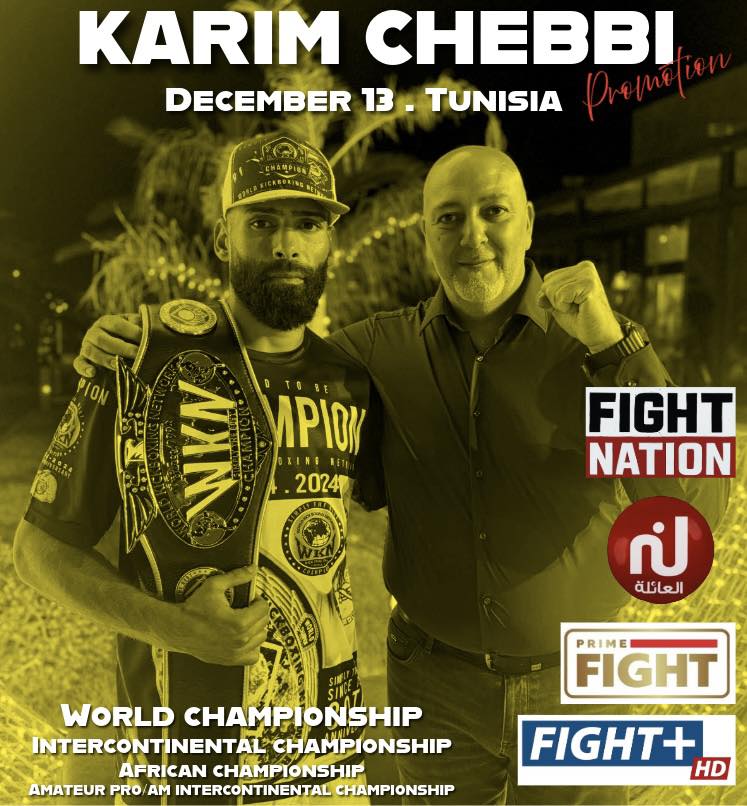 A true tour de force by promoter Mr. Karim Chebbi in Tunisia, who has successfully secured multiple television channels to broadcast his WKN World Championship on December 13th.