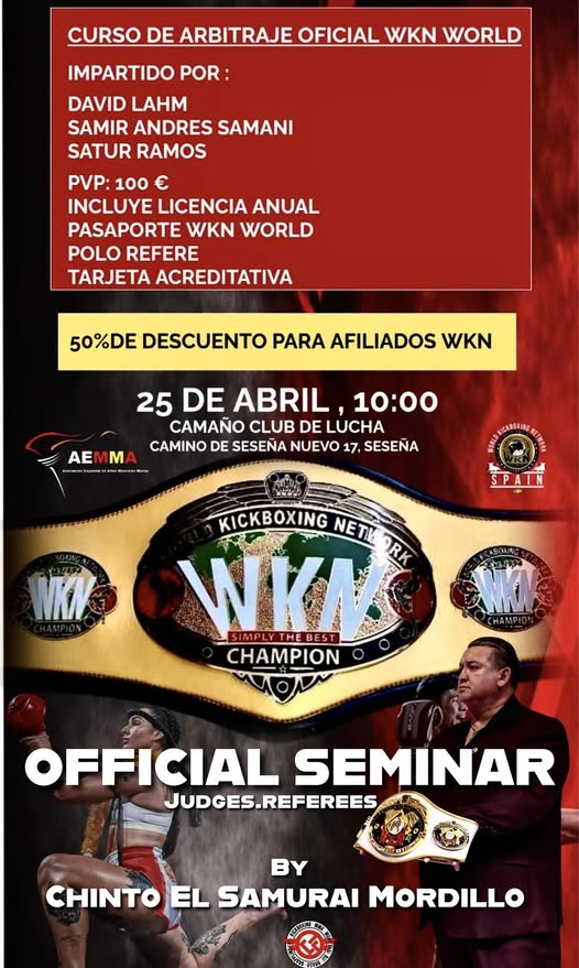 The program will bring together participants responsible for ensuring the proper conduct of bouts, including referees, judges, timekeepers, and other officials working within sanctioned events. The seminar has already received confirmation from around thirty members, who will be officially registered under the AEMMA & WKN framework.